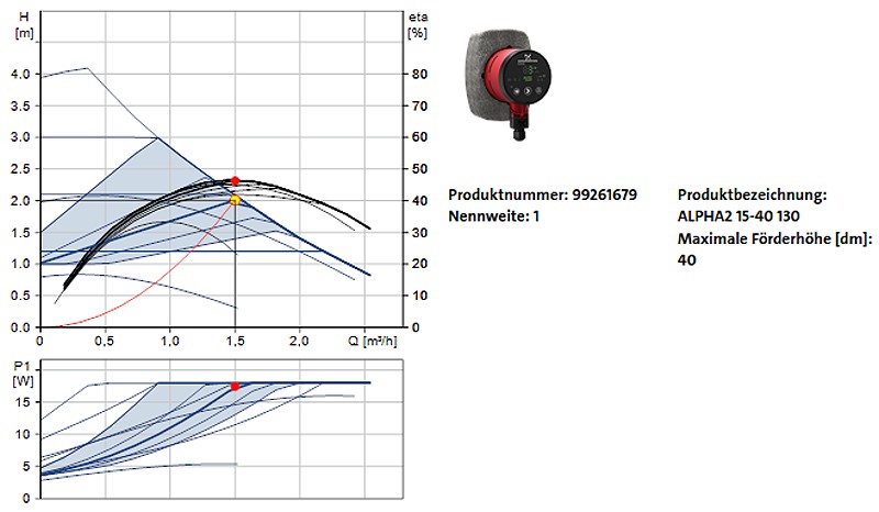 Hocheffizienz-Umwälzpumpe ALPHA2 15-40 130
