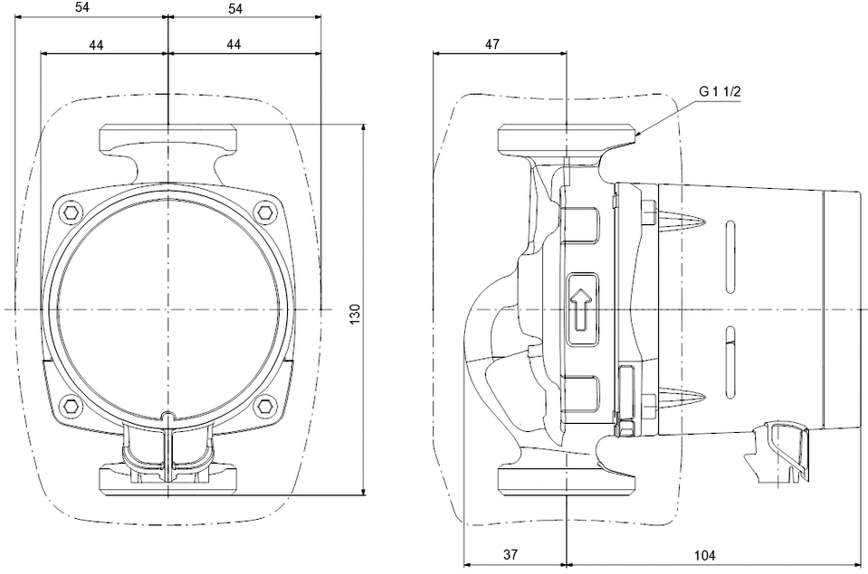 Hocheffizienz-Nassläuferpumpe mit Permanentmagnetmotor (ECM-Technologie) und integrierter, elektronischer Leistungsanpassung durch stufenlose Drehzahländerung.