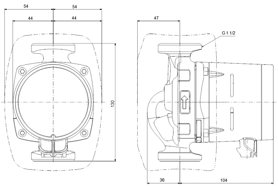 Hocheffizienz-Nassläuferpumpe mit Permanentmagnetmotor (ECM-Technologie) und integrierter, elektronischer Leistungsanpassung durch stufenlose Drehzahländerung.