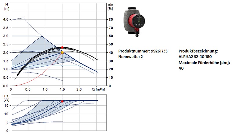 Hocheffizienz-Umwälzpumpe ALPHA2 32-40 180