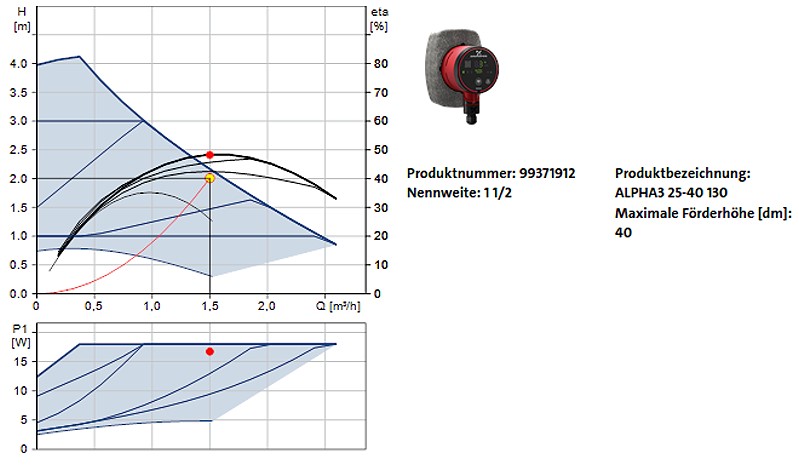 Hocheffizienz-Nassläufer-Umwälzpumpe ALPHA3 mit Permanentmagnetmotor (ECM-Technologie) und integrierter, elektronischer Leistungsanpassung durch stufenlose Drehzahländerung. Geeignet und vorbereitet für hydraulischen Abgleich.