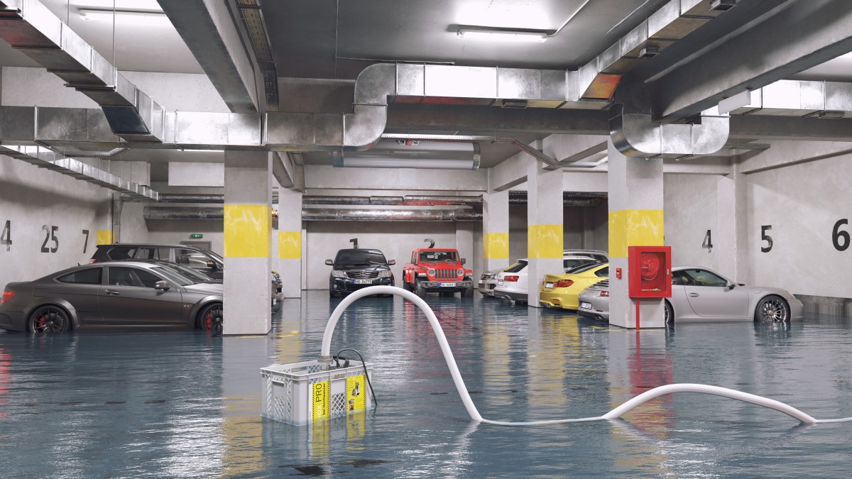 Komplettes Notfall-Set zum Leerpumpen überfluteter Kellerräume und Flächen.