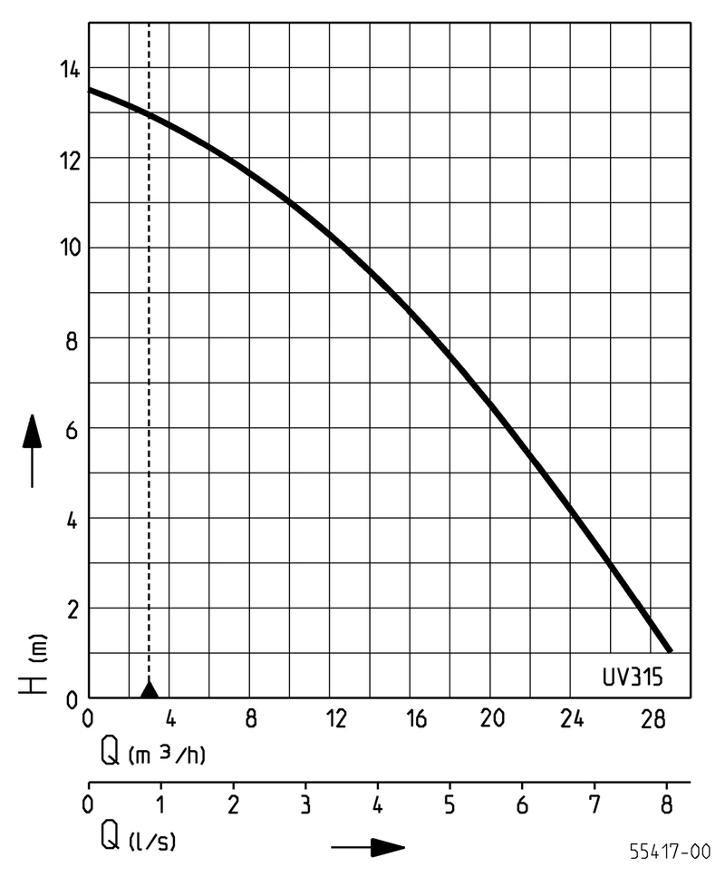 zuverlässig bis zu 28 m3/h Schmutzwasser, bei einem freien Durchgang von 10 mm. Die maximale Förderhöhe beträgt 13,5 Meter. Störende