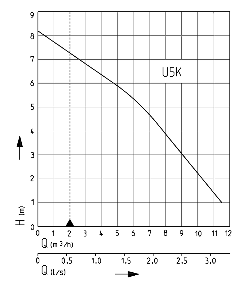 BeschreibungHersteller Beschreibung JUNG Schmutzwasserpumpe U5KS, mit 4 Meter Leitung Schmutzwasserpumpe mit angebauter Schaltautomatik Vertikal einstufige Tauchmotorpumpe mit horizontalem Druckabgang und hoher Betriebssicherheit. VDE GS, VDE EMC und TÜV bauart geprüft. Dauerbetrieb aufgetaucht Spüleinrichtung eingebaute Flachabsaugung trockenlaufsichere mediumseitige Radialwellendichtringe und motorseitig Ölkammer und Radialwellendichtring längswasserdicht vergossene Leitungseinführung, 4 Meter Netzleitung mit Schukostecker Kopf, Pumpengehäuse und Laufrad aus Kunststoff Motorgehäuse und Rotorwelle (voll gekapselt) aus Edelstahl Dokumente Datenblatt Jung U5 Mechanische Daten Pumpe vertikal einstufig Freier Durchgang 20 mm Lager Kugellager, fettgeschmiert Dichtung motorseitig Wellendichtring Ölkammer ja Dichtung mediumseitig 2-fach Wellendichtring Trockenlaufsicher ja Welle Edelstahl Laufrad Freistromrad, GFK Motorgehäuse Edelstahl Pumpengehäuse GFK Überflutbar ja Druckabgang 1 1/4" Gewicht 4,5 kg Elektrische Daten Schaltung mit Schaltautomatik Spannung 1/N/PE~230 V Motorleistung P1 0,52 kW Motorleistung P2 0,38 kW Strom 2,3 A Netzleitung 4 Meter H05RN-F Adern 3G0,75 Schutzart IP 68 Isolierstoffklasse F Wicklungsthermostat ja Motorschutz integriert Stecker Schuko Hersteller Hersteller JUNG PUMPEN GmbHIndustriestraße 4-633803 SteinhagenFon +49 5204 17-0E-Mail info@jung-pumpen.de Servicecenter Kundendienst Fon + 49 5204 / 17-17 Mo - Do: 7.30 - 16.30 Uhr Fr: 7.30 - 15.00 Uhr Zubehöre Jung Absperrschieber DN 32 Absperrschieber Messing DN32 mit 2 Muffen R 1 1/4 Zoll. 42,40 € * Drücken Sie ENTER für mehr Optionen zu Absperrschieber DN 32 Jung Elastische Verbindung DN32 PN3 Zubehör Verbinder für Jung Pumpen U3K / U5K / U6K - 1 1/4'' 9,80 € * Drücken Sie ENTER für mehr Optionen zu Elastische Verbindung DN32 PN3 Jung Schnellkupplung 1 1/4 Zoll Schnellkupplung aus Messing mit Schlauchtülle 1 1/4" (DN 25) für Jung U3K 22,10 € * Drücken Sie ENTER für mehr Optionen zu Schnellkupplung 1 1/4 Zoll Jung Schlauchset 15 m mit Zubehör Schlauch-Set für Jung U3K / U5K / U6K - 1 1/4'' 113,70 € * Drücken Sie ENTER für mehr Optionen zu Schlauchset 15 m mit Zubehör Jung Rückschlagklappe Kunstoff DN 32 Rückschlagklappe für Jung U3K / U5K / U6KE - 1 1/4'' 52,20 € * Drücken Sie ENTER für mehr Optionen zu Rückschlagklappe Kunstoff DN 32 Jung Jung Alarmschaltung AG3/AG10 Alarmgeber mit 3m oder 9,5m Leitung - potentialfreier Kontakt, netzabhängig - ersetzt JP16723 237,00 € * Drücken Sie ENTER für mehr Optionen zu Jung Alarmschaltung AG3/AG10 Weitere Option: Leitung Jung Jung Alarmschaltung AW3 Alarmschaltung - 3m Leitung mit Waschmaschinenstopp 297,80 € * Drücken Sie ENTER für mehr Optionen zu Jung Alarmschaltung AW3 Jung Jung Gleitrohrsystem GR 32/2 Zubehör Rohrsystem GR32/2 mit Befestigung 62,30 € * Drücken Sie ENTER für mehr Optionen zu Jung Gleitrohrsystem GR 32/2 Jung Niro Schelle 1 1/4'' Schlauchschelle für Jung U5K / U5KS 4,20 € * Drücken Sie ENTER für mehr Optionen zu Niro Schelle 1 1/4'' Benutzer, die diesen Artikel gekauft haben, haben auch gekauft Schlauchset 15 m mit Zubehör 113,70 € * Rückschlagklappe Kunstoff DN 32 52,20 € * Jung Alarmschaltung AG3/AG10 237,00 € *