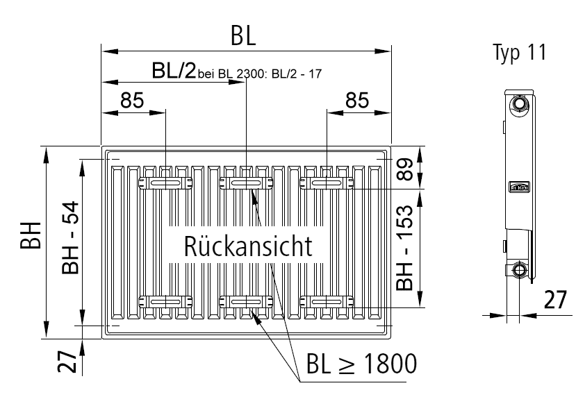 - Heizkörper mit 4 Laschen aus Stahlblech gemäß EN 442.