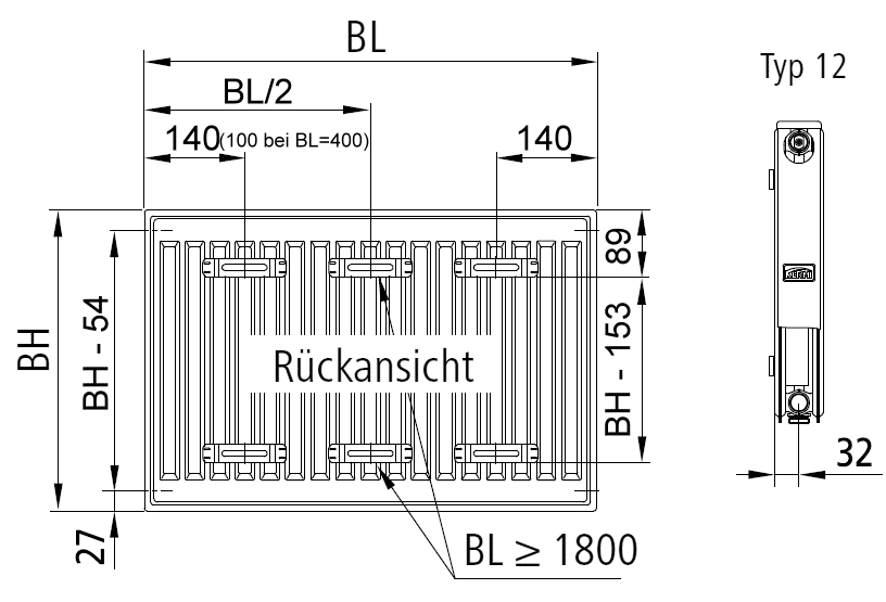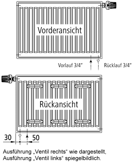 - Heizkörper mit 6 Laschen aus Stahlblech gemäß EN 442 - Sickenteilung 33 1/3 mm.