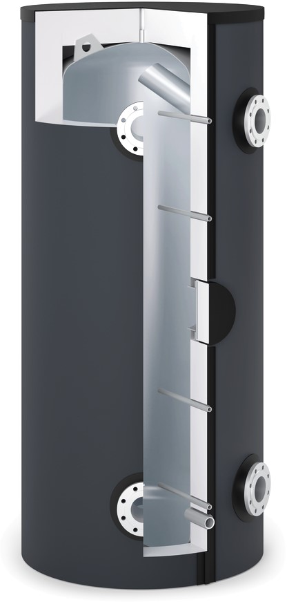 - Interne Umlenkung zur optimalen Temperaturschichtung und Nutzung des gesamten Volumens