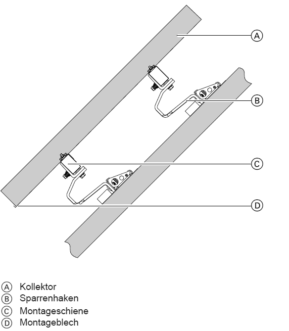 für horizontal montierte Viessmann Flachkollektoren Vitosol 100-FM und Vitosol 200-FM bei Aufdachmontage auf Dächern mit Dachpfannen-Eindeckung.