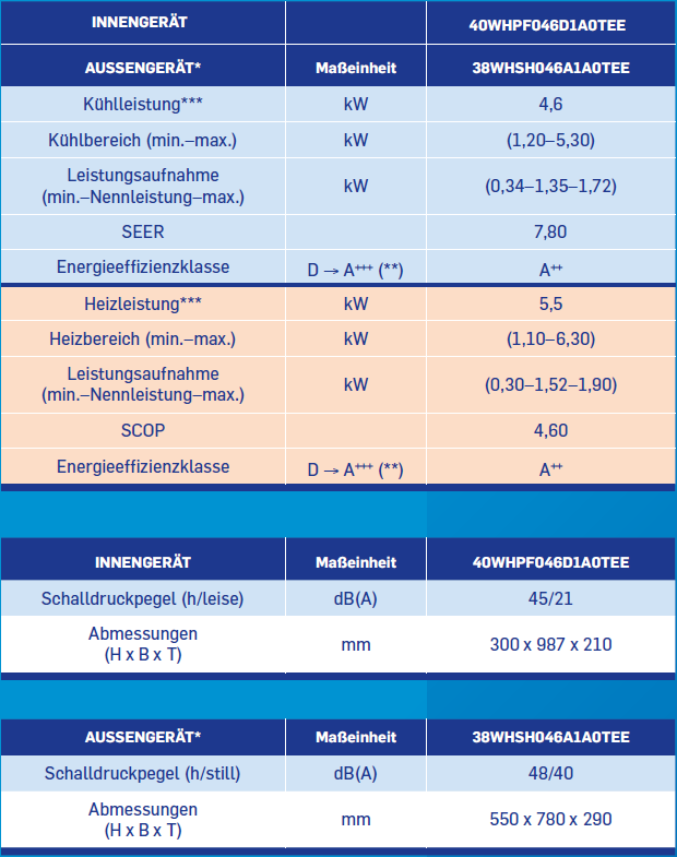 | AUSSENGERÄT | Maßeinheit | 38WHSH025A1A0TEE | 38WHSH035A1A0TEE | 38WHSH046A1A0TEE |