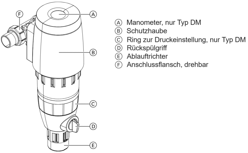 Halbautomatischer Rückspülfilter mit Druckminderer und Manometer