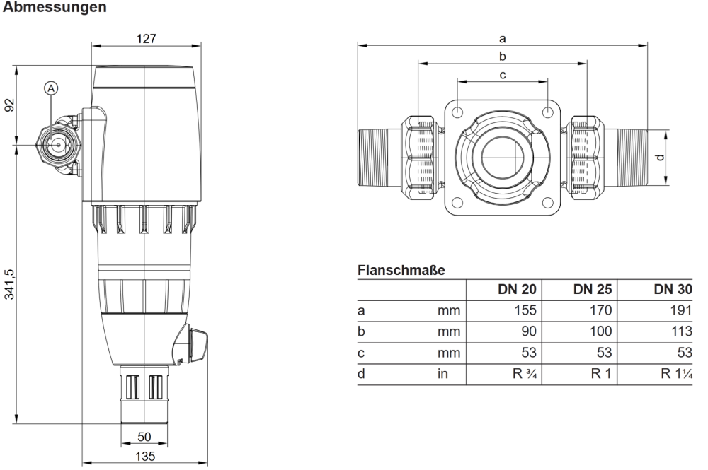 - Einschließlich Anschlussflansch aus Pressmessing, mit beidseitiger Verschraubung