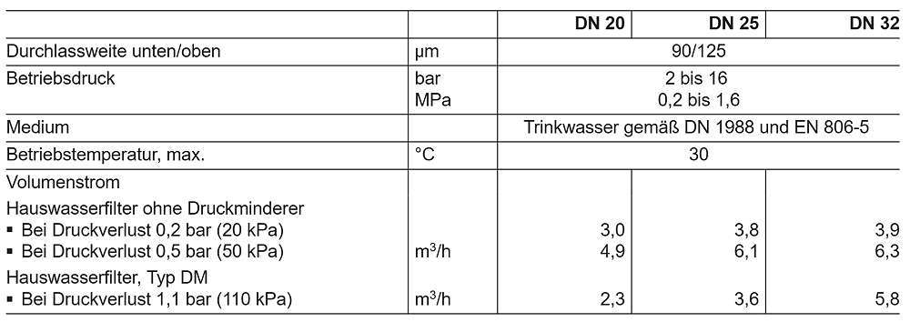 - Verwendungsbereich nach DIN 1988: Trinkwasser bis 30 °C