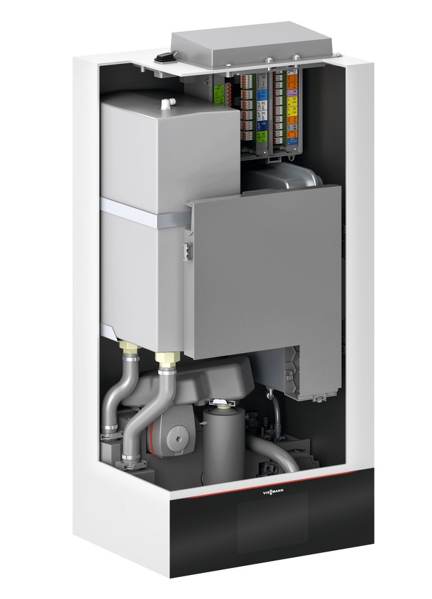 - Eingebaute Hocheffizienz-Umwälzpumpe für den Sekundärkreis