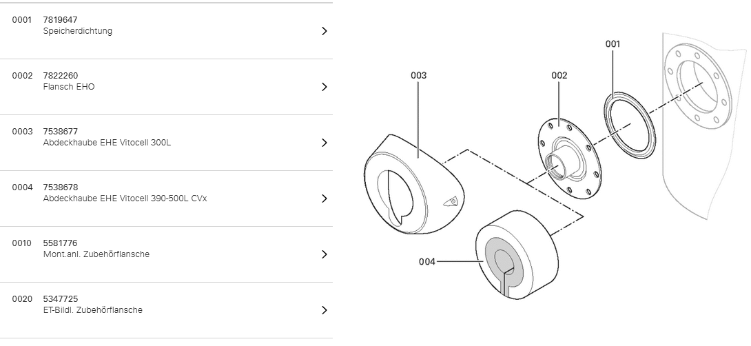- Flansch, Dichtung, Abdeckhaube
