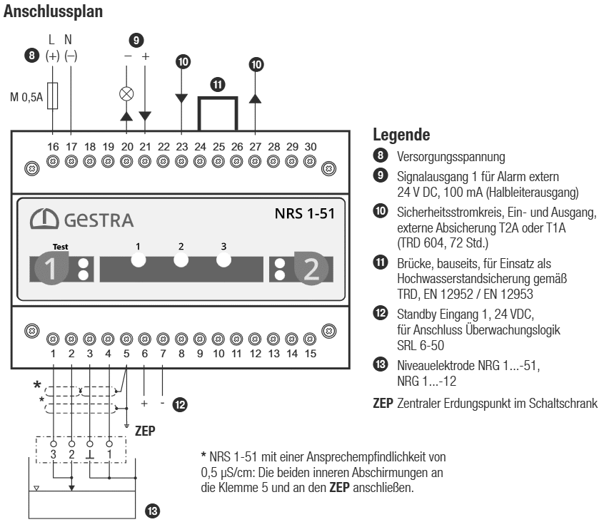 Elektrode NRG16-51 Min. für Maximal Niveaumessung - Einbaulänge 500 mm kürzbar