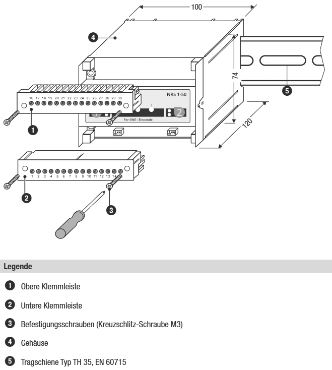 - Einbaugerät für 1 Elektrode, Spannung 24VDC