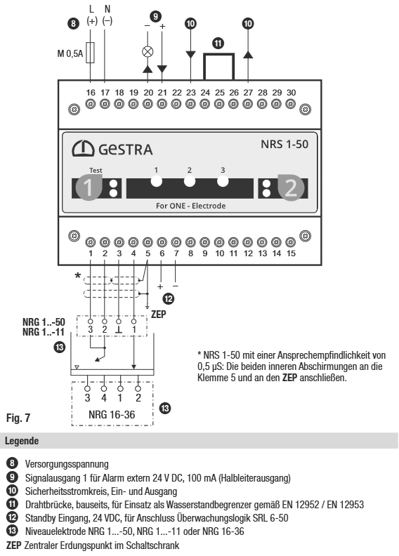 Elektrode NRG16-50 Min. für Minimal Niveaumessung - Einbaulänge 1000 mm kürzbar