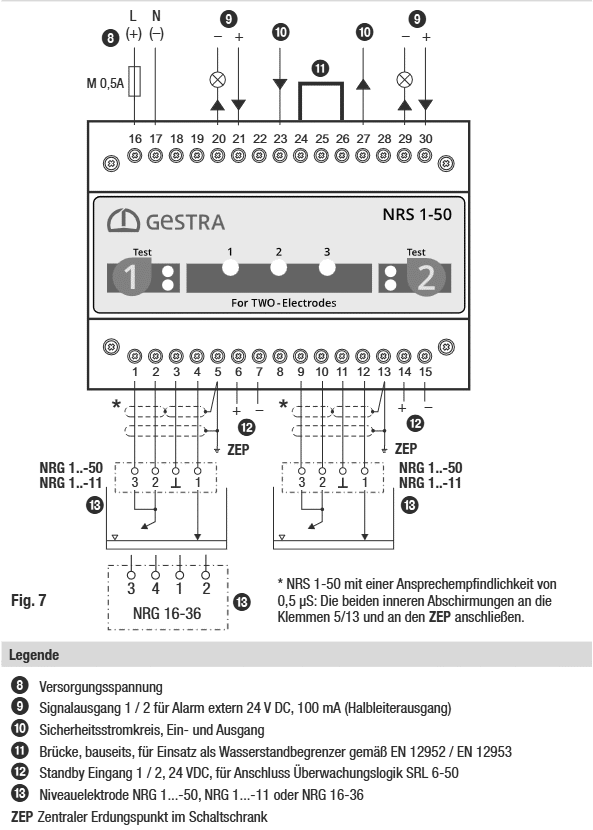 Elektrode NRG16-50 Min. für Minimal Niveaumessung - Einbaulänge 500 mm kürzbar