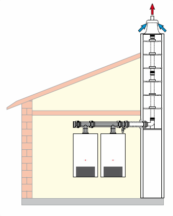 Bei Installation von Wolf Gasbrennwert-Zentralen ist ein zusätzliches Luft-/Abgasrohr zwischen den Geräten vorzusehen!